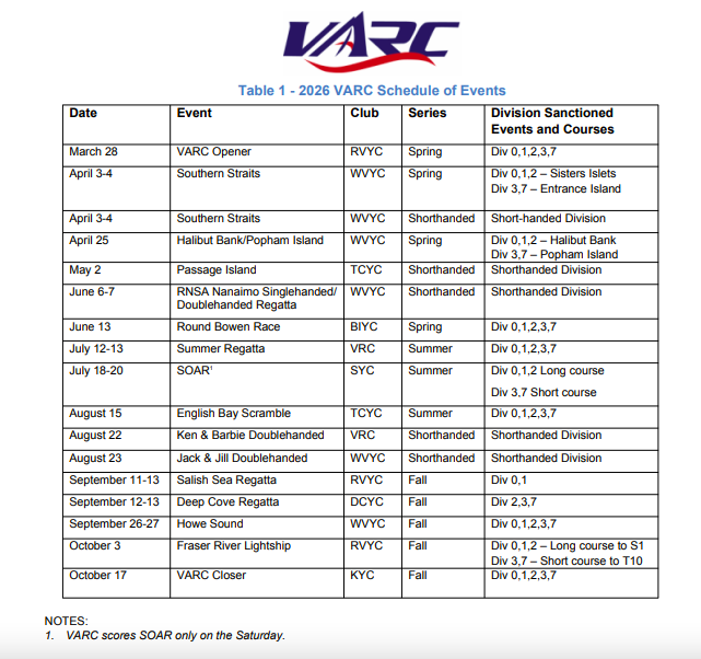 There are a number of exciting new changes to the 2026 VARC NOR and how the VARC Championship will be scored.